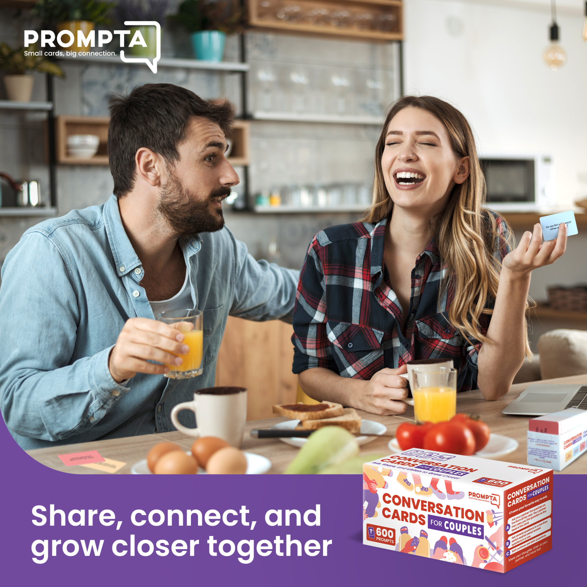 Prompta 600 Conversation Cards for Couples – Light, Medium, and Deep Get-to-Know-You Questions for Connecting With Your Partner – Date Night Topics for New or Married Couples – 2.5” x 1.75” Cards
