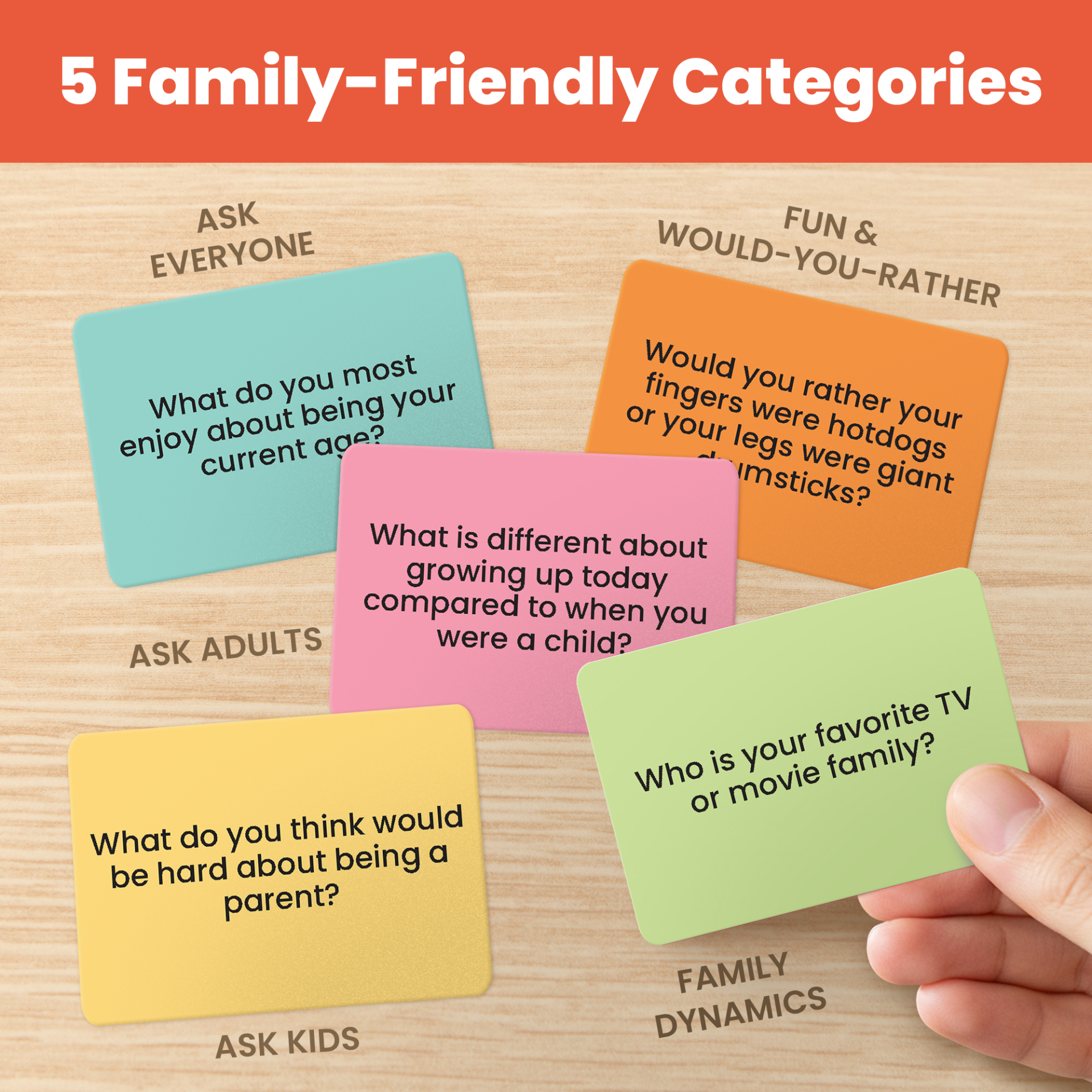 [Discuss What Family Means] – Talk about essential family values and what makes your family special with 57 questions from the Family Dynamics category.