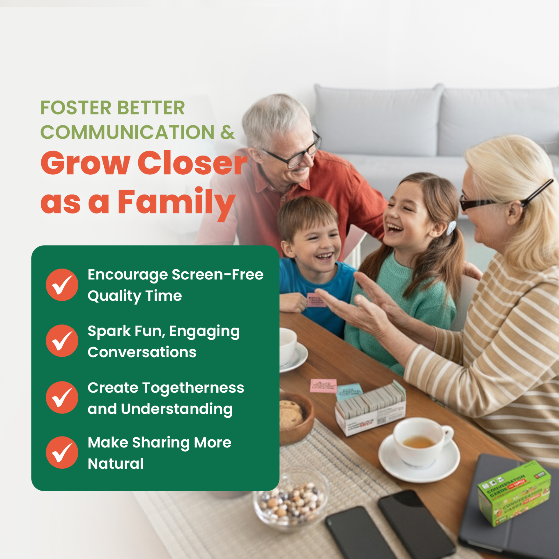 [Deepen Family Connections] – Spark fun conversations at the dinner table or during family game night. Great bonding activity for hanging out at home and special occasions like road trips, family vacations, holiday get-togethers, and family reunions.