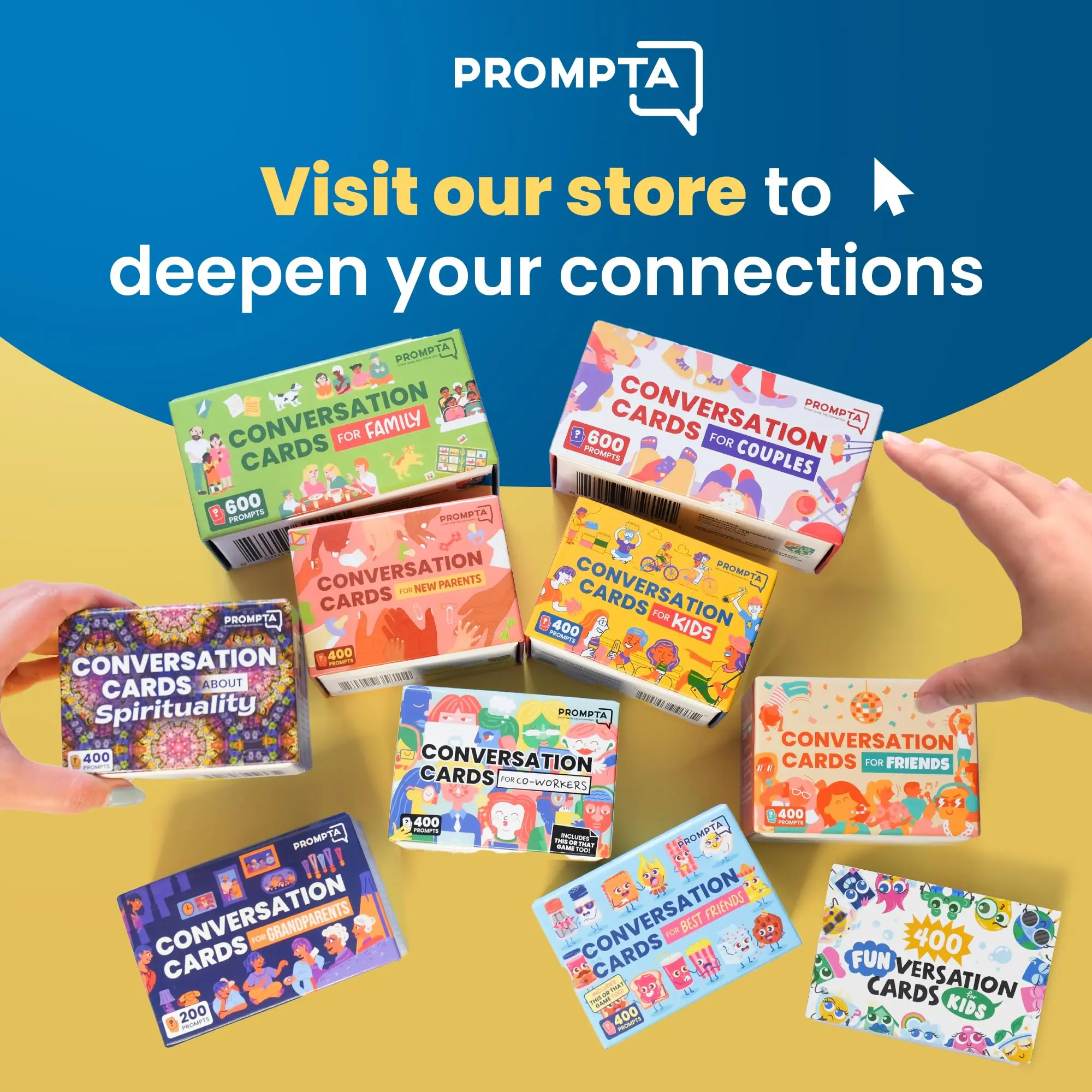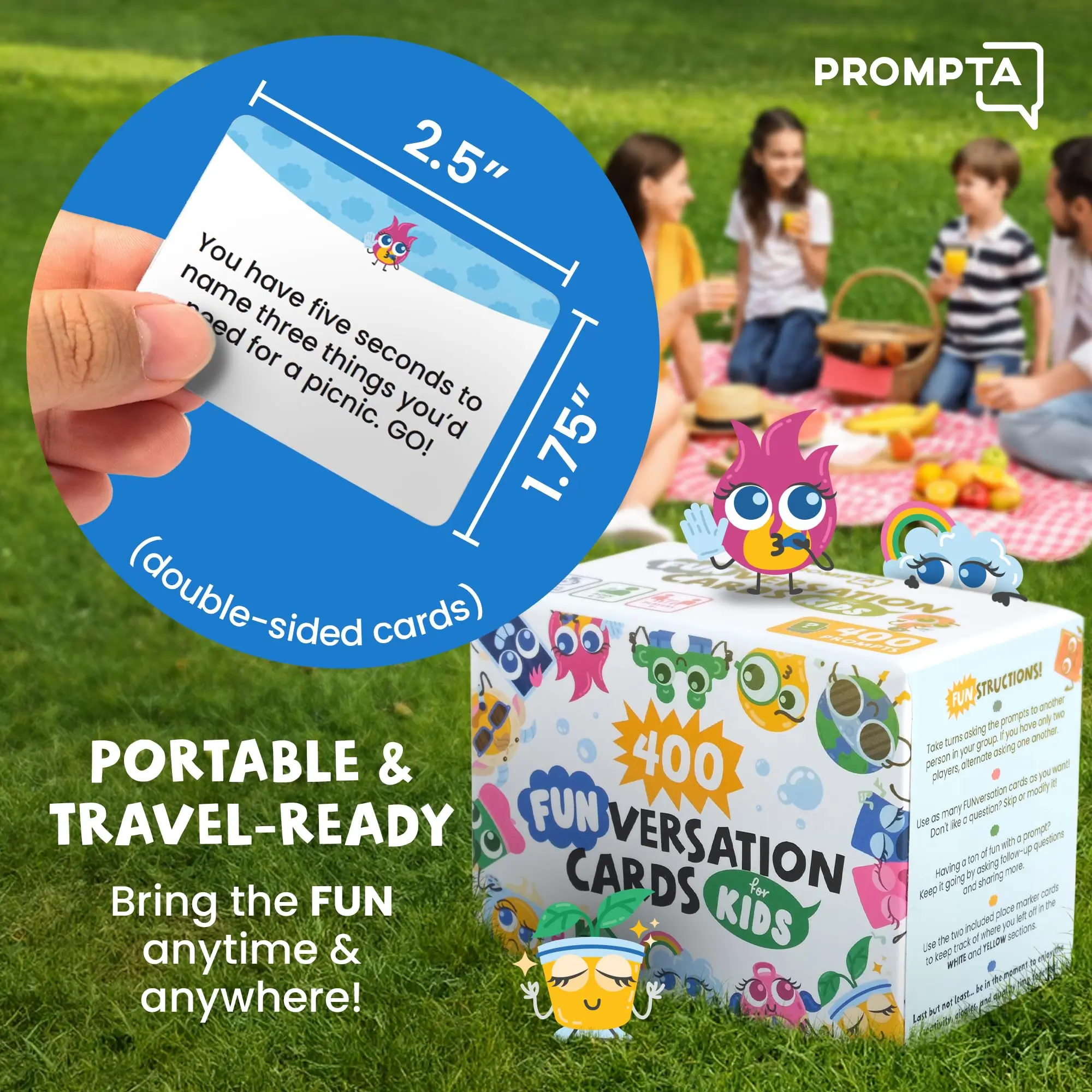 Prompta 400 Silly, Interactive Conversation Cards for Kids Ages 6-11 – Laugh and Connect with Activities and Questions from 16 Categories – 2.5″ x 1.75″ Cards Great for Road Trips, Family Dinner, or Class