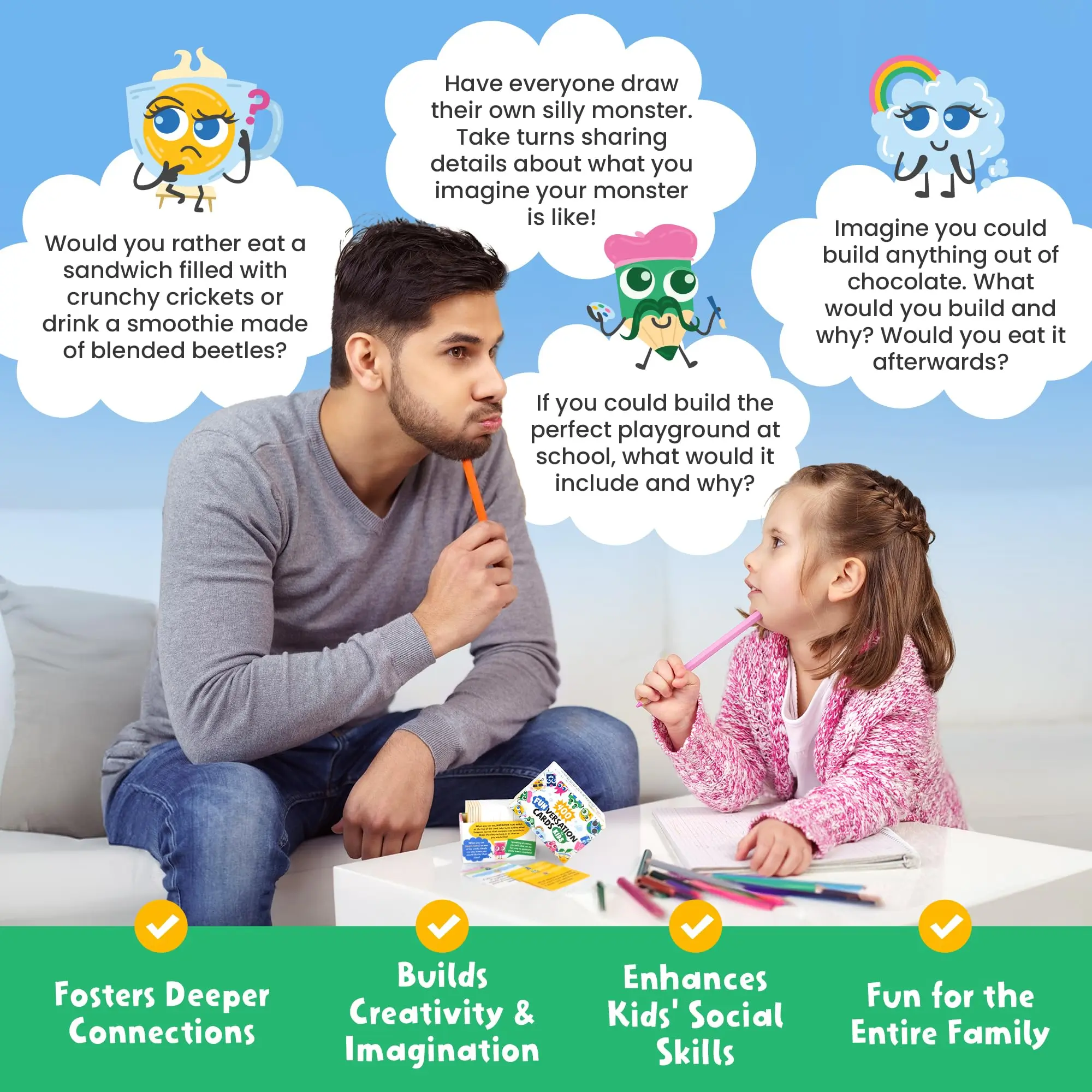 [Unleash Fun & Creativity] – These 400 conversation starters for kids feature playful questions, silly challenges, and interactive activities that spark imagination and connection. The quirky and thoughtful questions encourage social emotional learning, creativity, laughter, and opportunities to learn unexpected things about each other.